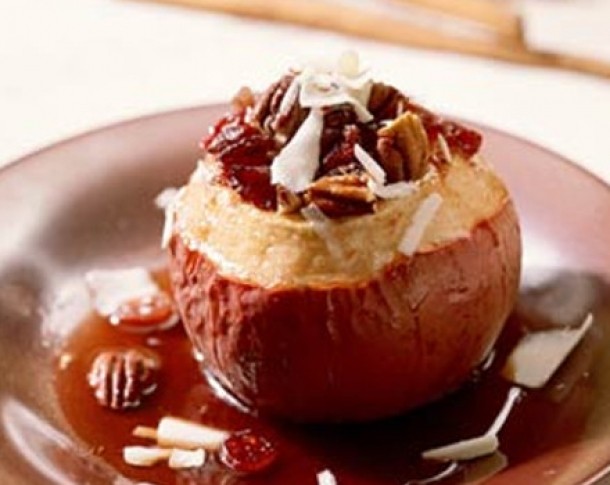 Mar copt - scobeste marul si umple-l cu nuci, migdale sau miez de floarea soarelui, adauga putina miere daca vrei sa fie mai dulce, si un strop de scortisoara. Baga-l la cuptor si lasa-l in jur de 10 minute.