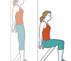 Stai cu spatele la perete si mainile pe langa corp. Sprijina-te de perete si fa cativa pasi in fata, dupa care coboara usor in pozitie de genuflexiune si trunchiul si picioarele formeaza ununghi de 90 de grade. Incordeaza muschii abdominali pentru a tonifia simultan si aceasta parte a corpului si ramai in aceasta pozitie timp de 1 minut.