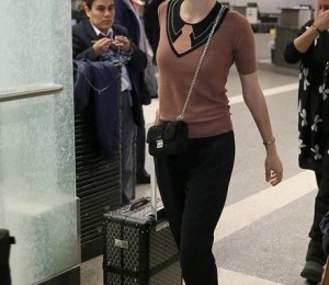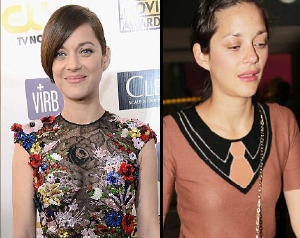 Coafura impecabil realizata si un machiaj natural te impiedica sa crezi ca in urma cu numai cateva ore, Marion Cotillard isi facea aparitia pe aeroport, obosita, trasa la fata, intr-o tinuta care ii sublinia silueta infiorator de slaba.