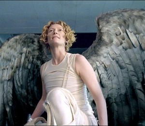 Actrita Tilda Swinton poarta aripi patate de sange in rolul arhanghelului Gabriel. Filmul, adaptat dupa romanul grafic "Hellblazer", are o multime de elemente violente si nori de fum de tigara. Personajul androgin interpretat de Tilda Swinton are un aer seducator, perfect pentru un personaj negativ de aceasta valoare. De ce este atat de putin angelic? Ei bine, Gabriel, potrivit filmului, este un personaj sinistru si plin de ura, care incearca sa injunghie abdomenul unei femei posedate cu un varf de lance, inainte ca diavolul sa ii incinereze aripile si in acest fel sa isi piarda puterile. Personajul clocoteste de o rautate palpabila si abia reuseste sa isi ascunda agenda secreta. Surse: 1, 2, 3, 4.