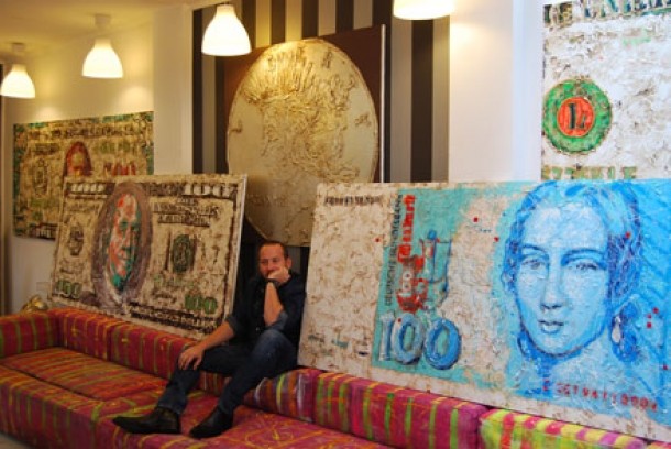 "Fiind un tip foarte pragmatic si cunoscand foarte multa lume, mi-am dat seama ca majoritatea e disperata dupa bani... din zece persone, opt isi ocupa timpul gandindu-se la BANI. Am stat si m-am gandit cum sa reusesc sa fac dintr-o hartie de 1$, 2000$ si am gasit solutia. Pictand! Iar clientul care cumpara lucrarea mea cu 2000 $, sa se bucure de ea si s-o vanda cu 50.000 $ peste cativa ani. Zic eu ca e o afacere buna pentru amandoi! ", a declarat Costin.
