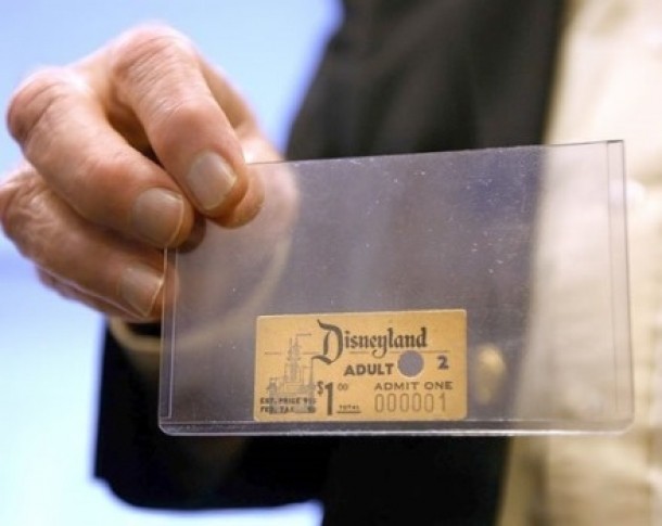 Dupa cum poti vedea in fotografie, acesta este primul bilet de intrare la Disneyland vandut vreodata. Acesta a fost cumparat de Roy O. Disney (fratele mai mare al lui Walt Disney) pentru un dolar, in 1955.