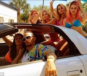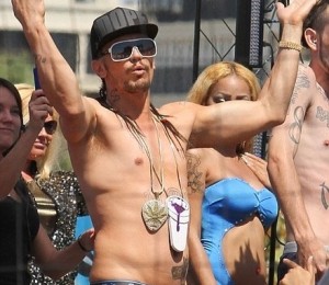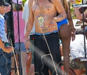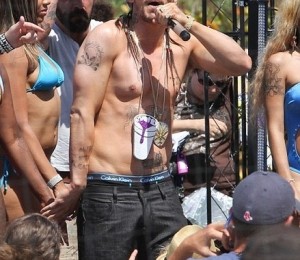 Acesta a fost fotografiat fara tricou, la bustul gol, aratand extraordinar. Avea tatuaje si arunca bani in public la ceea ce parea a fi propriul concert. Avea o basca pe care scria "Dope", ceea ce inseamna droguri, iar la gat purta un lant cu o frunza de marijuana.
