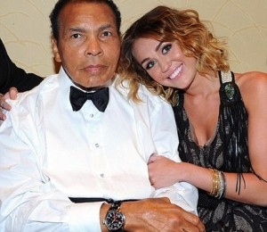 Cei doi au fost la Celebrity Fight Night in Phoenix, Arizona, eveniment organizat de renumitul boxeor Muhammad Ali. Cantareata a purtat o delicata rochie oranj, ce i se asemana celei purtate de Angelina Jolie la Oscar, anul acesta. De asemenea, Miley a purtat un superb inel pe degetul de logodna, pe care l-a scos in evidenta punandu-si mana in sold in timp ce a fost fotografiata. Ulterior, aceasta s-a schimbat intr-o tinuta neagra pentru prestatia sustinuta la eveniment.