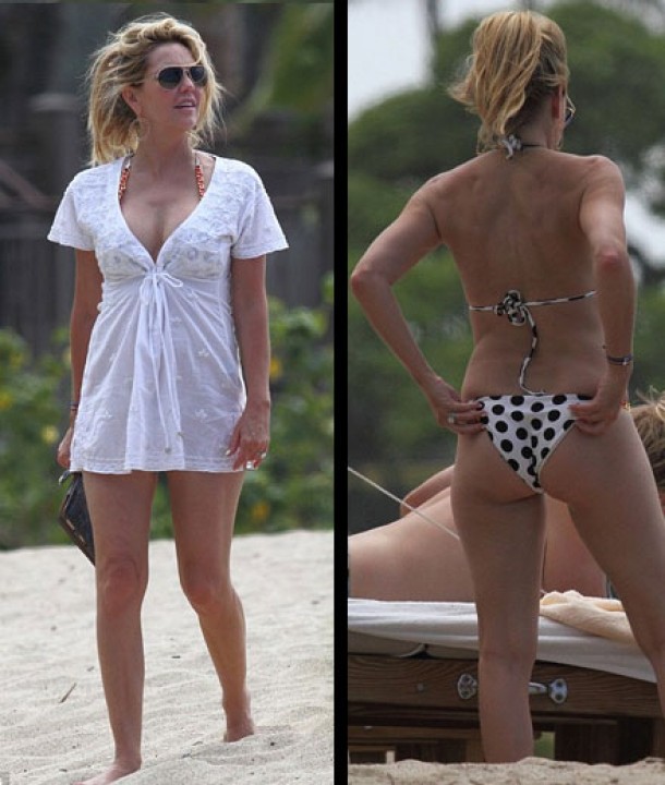 Aflata pe o plaja din Hawaii impreuna cu logodnicul ei, actorul Jack Wagner, Heather Locklear si-a expus trupul tonifiat intr-un costum de baie cu buline. De cateva ori, Jack a fost surprins sorbindu-si iubita din priviri. Are si de ce.