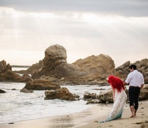 Desi este inspirata de animatia creata de studiourile Disney, frumoasa nunta falsa si implicit sedinta foto realizata de americani ti-ar putea servi drept sursa de inspiratie daca te casatoresti anul viitor si iti doresti o nunta tematica, pe plaja, intr-un cadru mai putin traditional. Sursa.