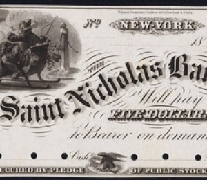 Se pare ca ideea a fost folosita pentru a inspira incredere in banca, prin asocierea institutiei bancare cu figura lui Mos Craciun, si sa ii inspire pe colectionari sa pastreze bancnota si sa nu o rascumpere niciodata, de fapt, pentru valoarea ei in aur. Cea de-a doua bancnota este de la Banca Saint Nicholas din New York.
