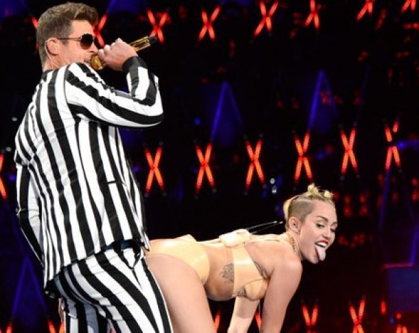 Sambata seara, in cadrul MTV Video Awards, Miley Cyrus a socat intreaga lume aparand pe scana imbracata in lenjerie intima din latex de culoarea pielii si dansand lasciv, mimand un act sexual cu Robin Thicke, cu care a cantat o melodie.