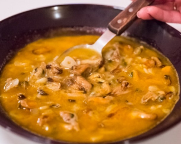 5. Scoate mancarea intr-o farfurie adanca, stoarce o jumatate de lamaie si presara putin patrunjel tocat deasupra. "Atentie: midiile care nu se deschid dupa fierbere nu sunt comestibile!", ne atrage atentia Andreea Ibacka.