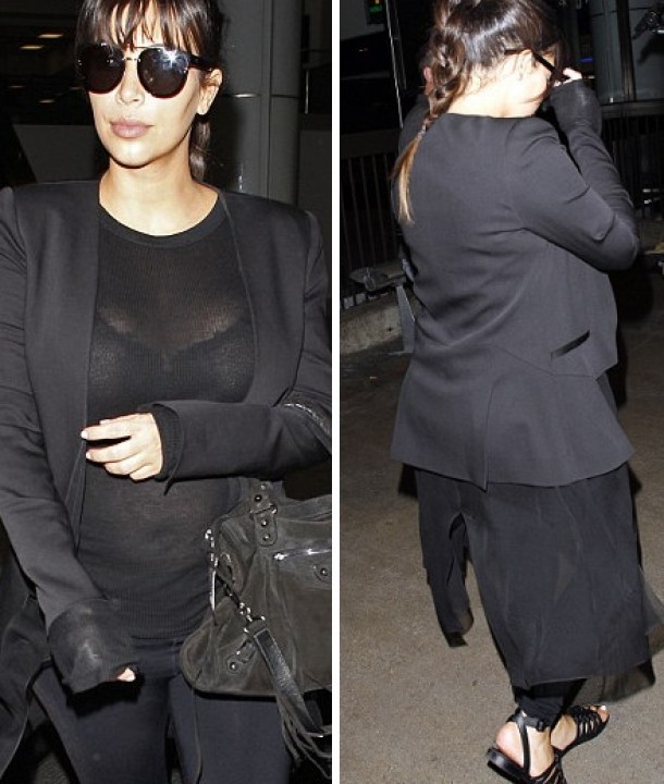 Astfel, a fost fotografiata intr-o tinuta all-black, compusa dintr-un top transparent care ii lasa la vedere mai mult decat ar fi fost indicat, un cardigan lung cu maneci ce depaseau inestetic linia sacoului, o pereche de leggings si sandale fara toc.