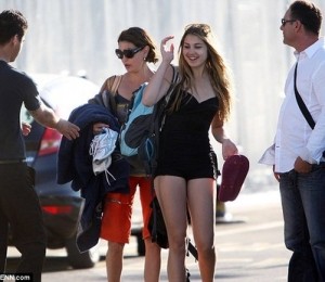 Emerson a imbracat un costum de baie negru, dintr-o singura piesa care ii lasa la vedere picioarele lungi si tonifiate. Teri nu a fost atat de indrazneata, preferand o tinuta casual, compusa dint-o pereche de pantaloni trei sferturi si un top larg.