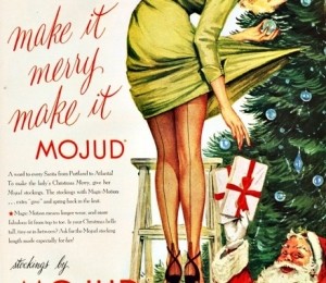 1. Mos Craciun se uita dupa femei. Nu este de mirare ca Mos Craciun este atat de vesel, din moment ce stie cum sa faca o femeie fericita. Daca ne luam dupa reprezentarile batranelului cu barba alba din reclamele americane de acum mai bine de 60 de ani, lui Mos Craciun ii placeau femeile, dar mai ales picioarele frumoase si lungi ale doamnelor. Si cum traditia spune ca Mos Craciun umple sosetele americanilor - atarnate in prealabil de semineu - cu tot felul de bunatati, de data aceasta “bunatatile” sunt pentru el, dupa cum se poate vedea din reclamele la ciorapii-pantalon Mojud. Parafrazand o vorba din popor, ce-i frumos, si lui Mos Craciun ii place, se pare ca, in conceptia agentiilor de publicitate americane, Mosului ii placea sa se uite sub fustele doamnelor si domnisoarelor. Dar nu va ganditi la prostii! Probabil voia sa se asigure ca ciorapii-pantalon pe care i-a adus in dar ii vin perfect doamnei din reclama.