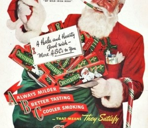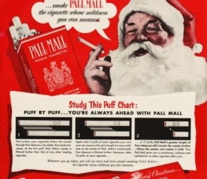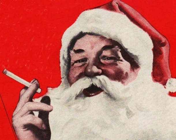 2. Mos Craciun fumeaza. Si nu doar ca fumeaza, dar mai aduce si in dar tigari in loc de jucarii. Cu o povara imensa pe umeri - sa livrezi miliarde de cadouri intr-o singura noapte, pe tot globul pamantesc, nu este deloc usor! - asa ca nu este de mirare ca nervii Mosului sunt pusi la grea incercare. Iar orice spiridus ti-ar spune (asa cum probabil i-a spus si Mosului) ca nimic nu calmeaza nervii si panica de dinainte de Sarbatori mai bine decat o tigara. Daca nu ne crezi pe cuvant, afla ca acesta era mesajul transmis de reclamele la tigari americane in urma cu mai bine de 60 de ani. In plus, in textele publicitare se sublinia ca medicii le recomandau cu regularitate pacientilor sa fumeze pentru a se calma, pentru a se elibera de tensiunea acumulata si pentru a-si imbunatati dispozita. Asa ca, influentat de milioanele de americani, si Mos Craciun mai pufaia din cand in cand cate o tigara sau doua, cu zambetul pe buze si cu bratele pline de cartuse de tigari.