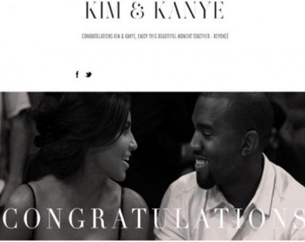 Sotia lui Jay-Z a dorit sa ii felicite pe cei doi parinti intr-o maniera originala, asa ca a postat pe site-ul ei o poza cu acestia, alaturi de mesajul “Felicitari Kim & Kanye, bucurati-va de acest frumos moment impreuna”.