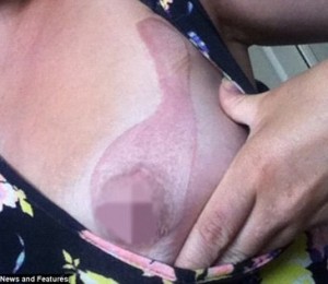Dionne Baxter s-a trezit cu o arsura grava in zona bustului si a mers de urgenta la spital, unde doctorii au incercat sa trateze rana cu o crema cu antibiotic si i-au oferit analgezice.