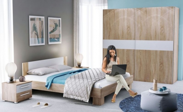 Plăci și MDF - seamănă cu lemnul, dar sunt mult mai ieftine. Ele sunt inferioare lemnului natural ca aspect și viață. În același timp, un dormitor complet din PAL are un preț mai mic și nu este toxic. Dormitoarele complete din PAL și MDF au o acoperire specială care crește rezistența la umezeală și deteriorarea mecanică. Există opțiuni laminate bugetare și mai scumpe, furniruite. În acest caz, mobilierul din PAL nu diferă vizual de modelul din lemn brut.