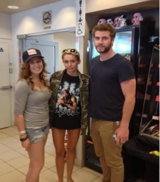 Cei doi nu si-au refuzat fanii si au facut poze cu fiecare in parte. Atat Miley, cat si Liam au adoptat tinute lejere. Cantareata a purtat un tricou lejer, care nu lasa sa i se vada pantalonii (exagerat de) scurti, o jacheta cu imprimeu de camuflaj si a renuntat la make-up.