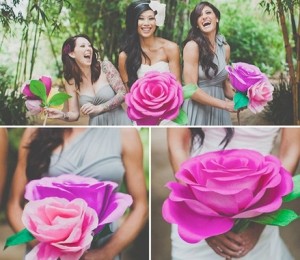 6. Inlocuieste buchetul miresei, dar si pe cele ale domnisoarelor de onoare, cu flori uriase din hartie.
