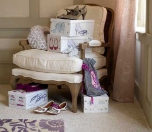Un pic de creativitate si amprenta personala o sa dea si cutiile de pantofi, care pot fi decorate si ornate cu poze sau etichete. Deosebit si multifunctional este si un fotoliu comfortabil (evident daca spatiul permite) pe care sa poti sa te asezi atunci cand vrei sa probezi sau sa incalti pantofii respectivi.