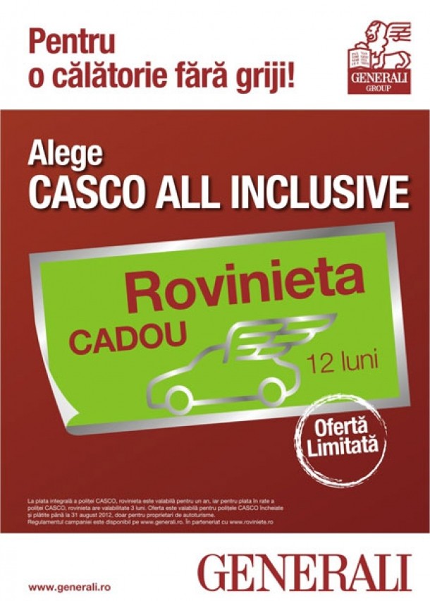 Pentru ca stim cum este cu jongleria de activitati din fiecare zi si pentru ca vrem sa fim alaturi de femeile responsabile, Generali Romania a lansat in aceasta vara Casco "All Inclusive", care cuprinde asigurarea Casco cu cea mai larga paleta de riscuri acoperite, rovinieta cadou, plus alte beneficii suplimentare. Bye-bye griji in trafic, hello distractie si relaxare!