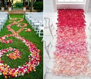 Petalele de flori sunt nişte decoraţiuni clasice, romantice şi uşor de inclus în evenimentului tău. Poţi crea o alee, până la altar, pavată cu petale sau poţi scrie un anumit mesaj din petale de flori pe care să îl citească toţi cei care participă la nunta ta.