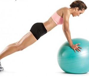 1. Pune-ţi mâinile direct sub umeri şi pe părţile laterale ale unei mingi de fitness. Menţine-ţi trunchiul drept, lasă-te jos până când pieptul tău se află situat deasupra mingii, apoi împinge-te înapoi. (Vezi imaginea de mai jos).