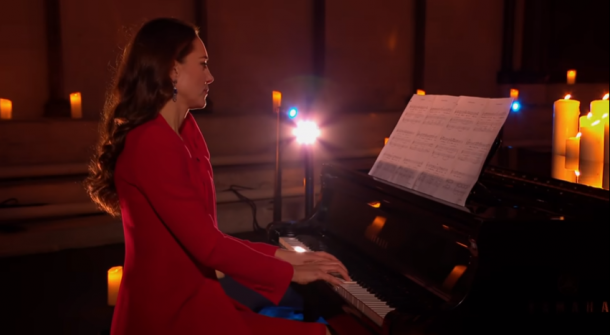 Pentru noaptea de Ajun însă, ducesa de Cambridge a lăsat în urmă tracul şi a interpretat la pian pentru prima dată în public.