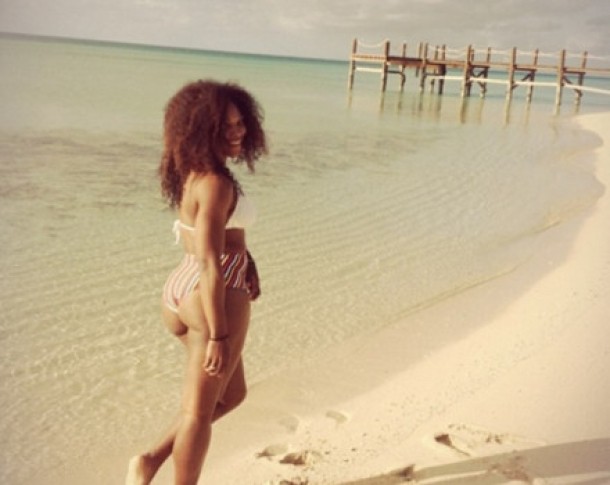 Serena apare astfel in fotografii purtand mai multe costume de baie, care ii pun in valoare cu succes conditia fizica. Se pare ca posteriorul reprezinta atuul ei fizic de pret aparand in multe imagini pozand cu spatele si privind seducator peste umar.
