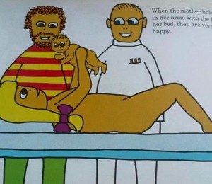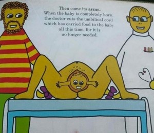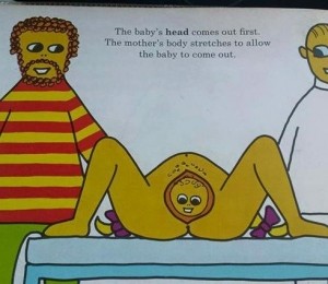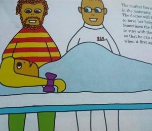 Cartea mai descrie cum ovulul este fecundat de spermatozoid, dar şi cum se dezvoltă bebeluşul, apoi arată cum ajung părinţi la spital pentru naşterea bebeluşului. Cartea este şi mai explicită, ilustraţiile arătând cum bebeluşul iese din vaginul mamei, iar la final, autorul scrie cât de fericiţi sunt tatăl şi mama. Sursa foto.