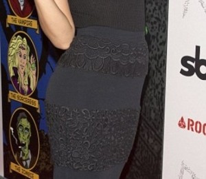 Tinuta adoptata insa de artista nu a fost una tocmai demna de o regina. Fusta mulata, cu talie inalta si detalii din dantela nu s-a potrivit deloc cu topul negru, fara maneci, usor transparent, lasand la vedere sutienul, care ar fi dus cu gandul mai degraba la o tinuta casual.