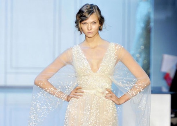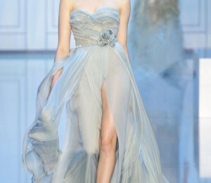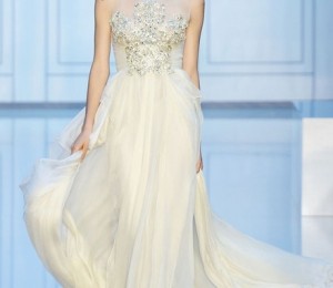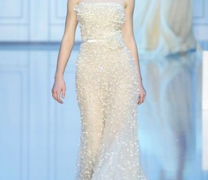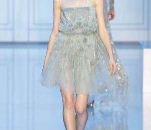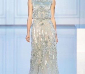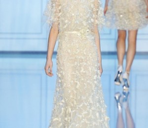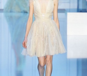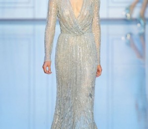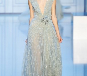 Culori delicate ca ivory, bronz si gri passe invaluie texturile vaporoase, pe care sunt aplicate cristale Swarovski - un tablou perfect pentru a descrie o femeie intangibila, fragila dar extrem de seducatoare. Multa dantela si matase si un design menit sa puna in valoare o silueta extrem de feminina – un indemn la rafinamentul Old Hollywood Gram.