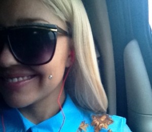 Machiaj strident, tatuaje, piercinguri orale in ambii obraji, buze injectate...tanara actrita este de nerecunoscut.