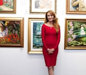 Cu zambetul pe buze, asa i-a intampinat Jane pe cei veniti sa ii admire tablourile. Imbracata intr-o rochie rosie, mulata, actrita arata impecabil si nimeni nu i-ar putea da varsta de 61 de ani. Mama a patru copii, aceasta detine o silueta demna de invidiat.