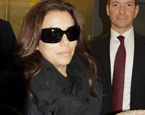 Eva a optat pentru o tinuta banala, all-black, accesorizata cu o pereche de ochelari negri supradimensionati.