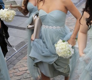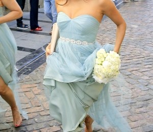 Te poţi inspira din ţinuta actriţei pentru ţinutele domnişoarelor de onoare pe care le vei avea la nuntă. Dacă evenimentul va avea loc într-o zi călduroasă de vară, undeva la ţară, într-un loc plin de verdeaţă sau pe malul mării, poţi lua în considerare ideea domnişoarelor de onoare desculţe.