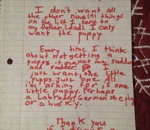 Emily, nepotica in varsta de 8 ani a unui utilizator al site-ului Reddit vrea doar un catel de Craciun, asa ca i-a scris lui Mos Craciun o scrisoare foarte exacta in legatura cu dorinta ei arzatoare.