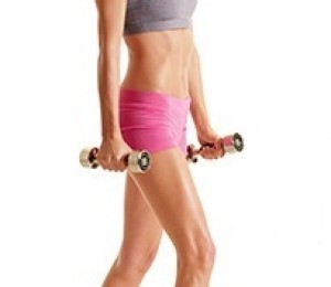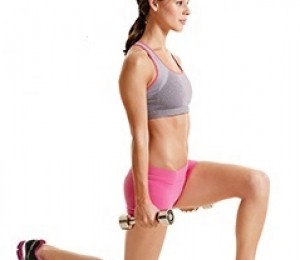 1. Ţine o pereche de gantere în mâini, la lungimea braţelor tale, pe lângă corp, cu palmele orientate către tine. Stând în poziţie de fandare, piciorul tău stâng trebuie pus în faţa piciorului drept. Lasă-ţi corpul jos cât de mult poţi sau până când genunchiul piciorului din spate atinge podeaua.