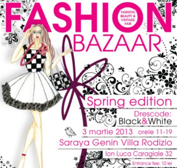 Pe 3 martie 2013, la Villa Rodizio (Saraya Genin) - Ion Luca Caragiale 32 - are loc cea de-a 7-a editie a FASHION BAZAAR - cel mai mare targ de moda, cosmetice si vintage. Peste 60 de expozanti vin cu noile colectii de primavara.
