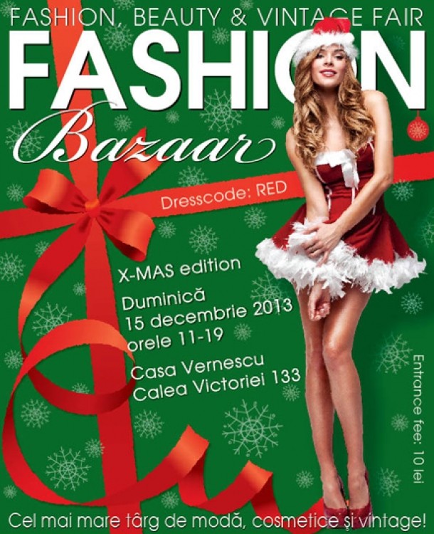 DUMINICA, 15 decembrie 2013, la Casa Vernescu - Calea Victoriei 133 - are loc cea de-a 12-a editie a FASHION BAZAAR - cel mai mare targ de moda, cosmetice si vintage. Peste 60 de expozanti va asteapta cu multe cadouri si multe surprize.