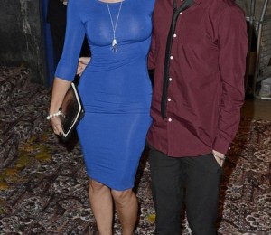 Rochia stramta, intr-o nuanta de albastru cobalt, s-a dovedit a fi transparenta in lumina reflectoarelor, iar lipsa sutienului a lasat-o pe vedeta cu sanii la vedere.
