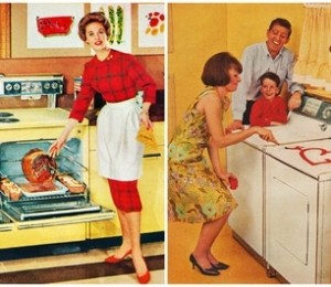 Astfel, femeile din acea perioada era prezentate in paginile revistelor si publicatiilor de specialitate drept gospodine fericite care erau la fel de "inghetate", "rigide" si perfect "ambalate" ca si alimentele procesate pe care le serveau familiilor lor in timpul Razboiului Rece.
