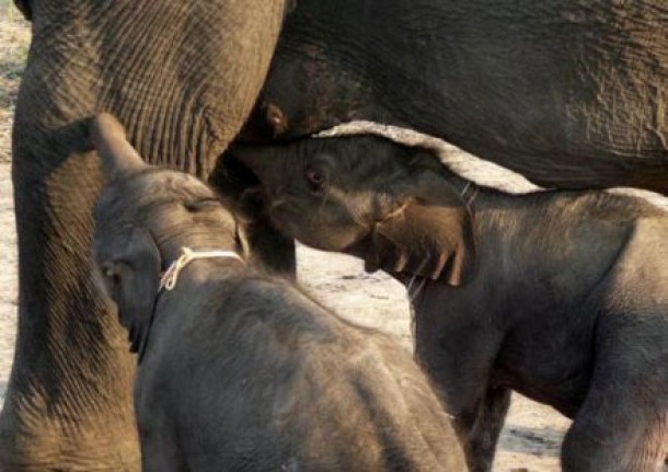 Nasterea de elefanti gemeni este un fenomen rar in lume, iar procentul de supravietuire este foarte scazut.