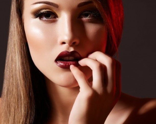 - Nu trebuie sa uiti nici de buze, chiar daca va veti petrece majoritatea timpului sarutandu-va. Rosu este, bineinteles, culoarea ideala, si, pentru a te asigura ca va rezista pe buze intreaga seara, este recomandat sa conturezi mai intai buzele cu un creion, aplicand creionul si pe buze. Va functiona ca baza de machiaj. Aplica apoi nuanta de rosu dorita.