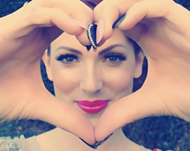 Astfel, cu mainile in forma de inima, ca in fotografie, cu arcurile inimii ce se intalnesc fix in punctul dintre sprancene si punctul cel mai de jos al inimii plasat fix in mijlocul barbiei, pe linia care imparte figura in doua zone egale.