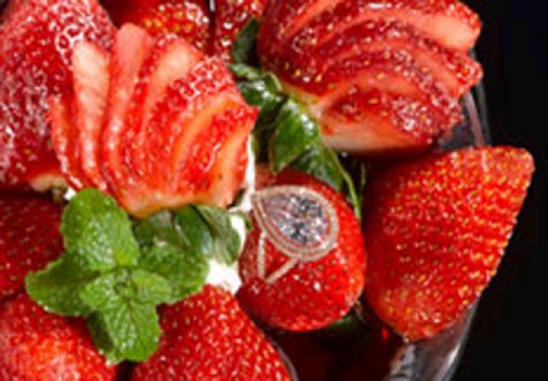 Desertul, care inca nu a fost vandut, cuprinde un bol cu capsuni, la care se adauga un diamant roz de 4.7 carate, care a apartinut bancherului englez Sir Ernest Cassel.