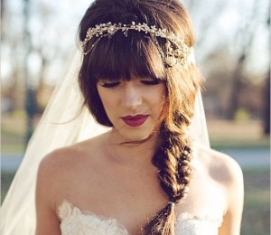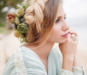O coroană realizată dintr-o coadă împletită, accesorizată cu câteva flori naturale, este perfectă pentru miresele adepte ale curentului boho-chic, atât de la modă la acest moment.