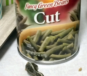 Troy Walker pregătea cina şi era gata să mănânce când a remarcat ceva respingător în farfurie. În momentul în care a scos cu lingura fasolea din conservă, s-a uitat mai bine şi a ţipat instant, scăpând lingura din mână. Se pare că în conserva de fasole verde se ascundea un cap mic de şarpe.