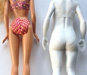 Artistul a transformat silueta papusii Barbie, cu masurile 36-18-33, intr-o varianta ceva mai realista, cu un bust de 38 de inchi, o talie de 34 de inchi si solduri de 40 de inchi.