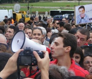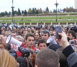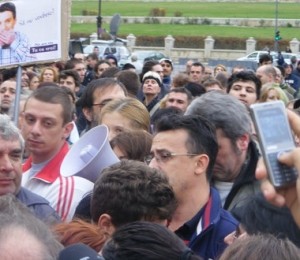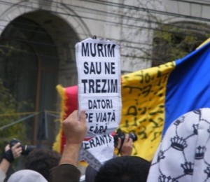 Cateva sute de oameni s-au alaturat actiunii de protest si au strigat "Jos cenzura!", "Iesi afara, javra ordinara!", dar si impotriva presedintelui Traian Basescu si a Guvernului Boc.