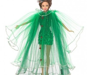 Cele 5 papusi Barbie poarta tinute diferite, toate in ton cu Craciunul: bradul de Craciun, renul patinator, glob, Craciunita si Santa Baby.